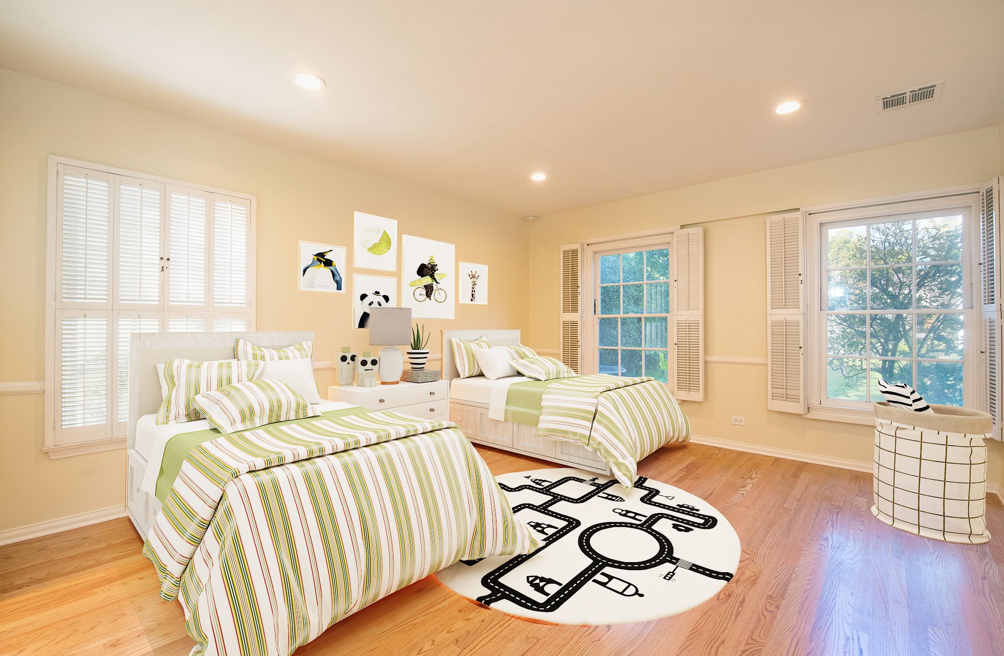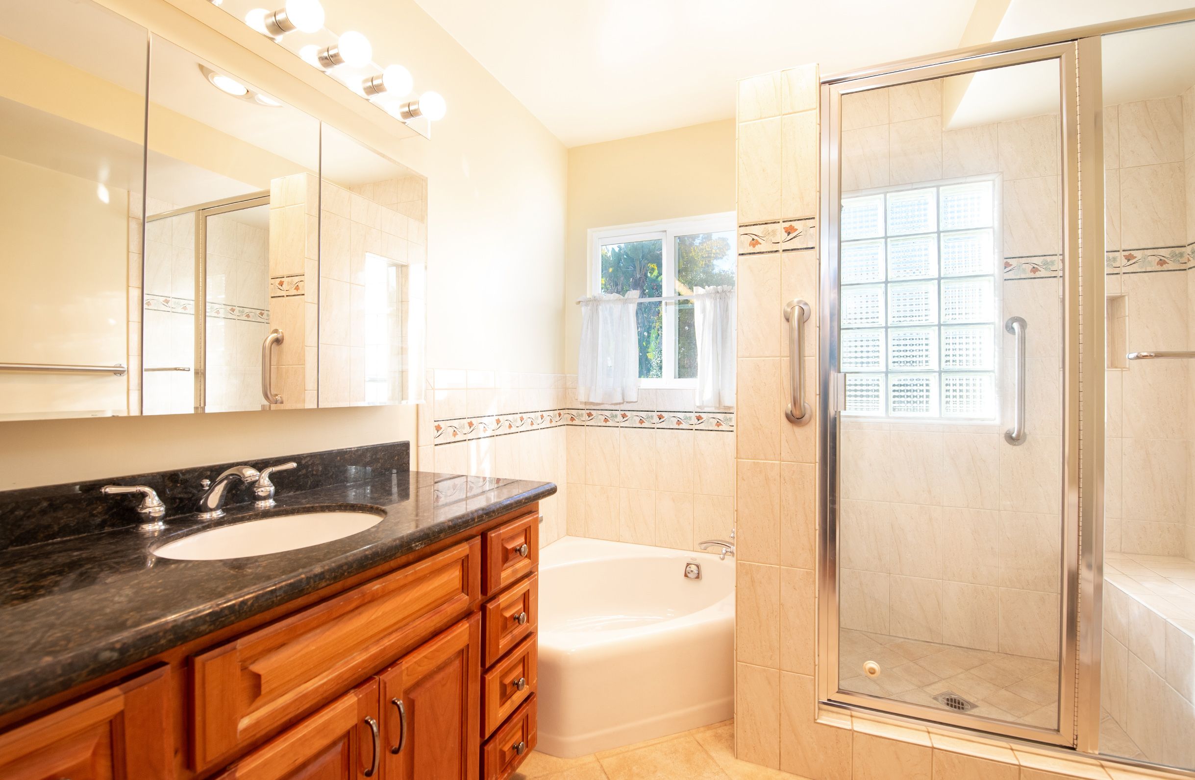 Reportedly built for glamorous film noir siren Gene Tierney, this elegant home in historic Carthay Circle is an entertainer's paradise. With over 2600 square feet, this house is larger than most in the neighborhood, and you can really feel the extra space in the expansive public rooms. Brick planters with lavender and rose flowers line the elegant walkway up to the gracious brick-covered entry area leading to the front door. Enter through the grand foyer and enjoy gracious gatherings in the sizable living room with decorative fireplace and large windows. A separate den with beautiful built-ins and fireplace is perfect for watching TV or playing games. Host the dinner party of your dreams in the oversized dining room, which leads to a large, updated, eat-in kitchen with granite counters and newer appliances including double ovens and a gas cooktop. Sip coffee in the sun-drenched bonus room overlooking the charming bricked backyard patio, or use the space as a playroom or office. There are three bedrooms, each with an ensuite bathroom. Authentic period details include gleaming hardwood floors with custom inlay, dentil crown-molding, wainscoting and high ceilings. Beautiful hardwood flooring in the entry hall, all entertaining areas, and in all of the bedrooms. Separate laundry room and two car garage, plus room for more cars in the driveway. Central heat and A/C. Gorgeous custom wood shutters throughout the house. Recently painted. Minutes to Beverly Hills, Beverlywood, Century City and The Grove. Perfection!
